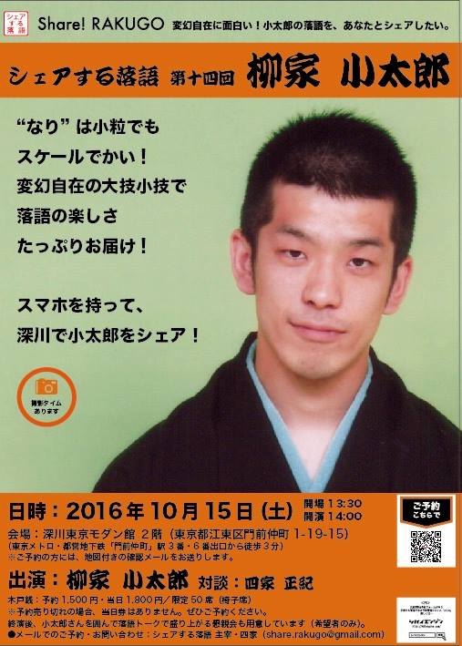 - 出演: 柳家小太郎(3席予定) 対談:四家正紀